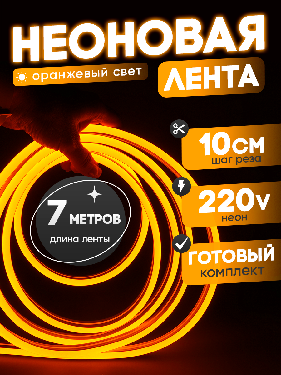 Неоновая лента 220В оранжевый гибкий неон 7 метров 8х16, IP67, 120Led, 10W, шаг реза 10см: сравнение цен, характеристики, фото, актуальное наличие и цены.