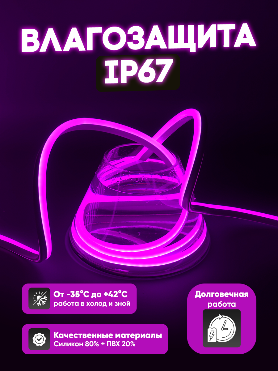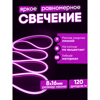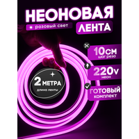 Неоновая лента 220В розовый гибкий неон 2 метра 8х16, IP67, 120Led, 10W, шаг реза 10см: сравнение цен, характеристики, фото, актуальное наличие и цены.