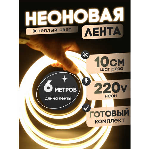 Гибкий неон это герметичная светодиодная лента в полимерной оболочке длиной 6 метров. Неоновая лента 220в теплый белый свет 3000К сечение 8х16мм с кратностью реза 10см, что позволяет подогнать неон под нужный размер. Светодиоды нового поколения SMD2835 в количестве 120 штук в каждом метре, яркие, не нагреваются даже при длительной работе, позволяют значительно экономить электроэнергию мощность 10Вт/м. Материал оболочки силикон с добавлением ПВХ, не выгорает и не желтеет, более мягкий и гибкий. Светодиодная гибкая лента водонепроницаема IP67, можно погружать в воду на короткое время.
