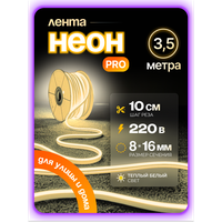 Купить Неоновая светодиодная лента PJ Neon 3,5м, 8х16мм, 220В, 120 LED/m, IP 67, теплый белый, кратность реза 10 см с доставкой по всей России.