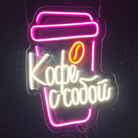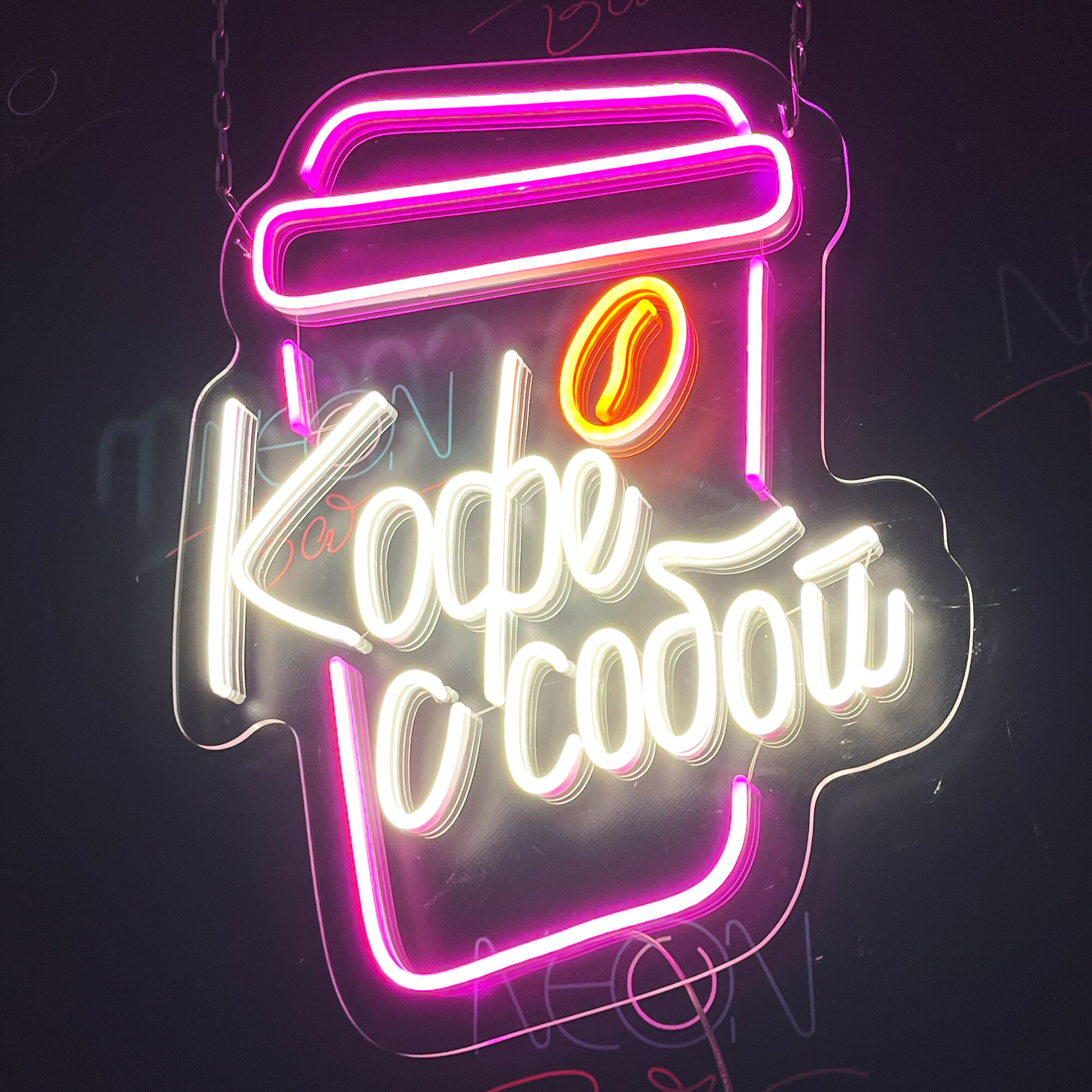 Неоновая вывеска "Кофе с собой" — яркое и лаконичное обозначение для вашего кофейного бизнеса. Этот стильный знак привлекает внимание и подчеркивает возможность взять любимый напиток с собой. Яркий свет и понятный текст создают приятную атмосферу, приглашая клиентов насладиться кофе в движении.