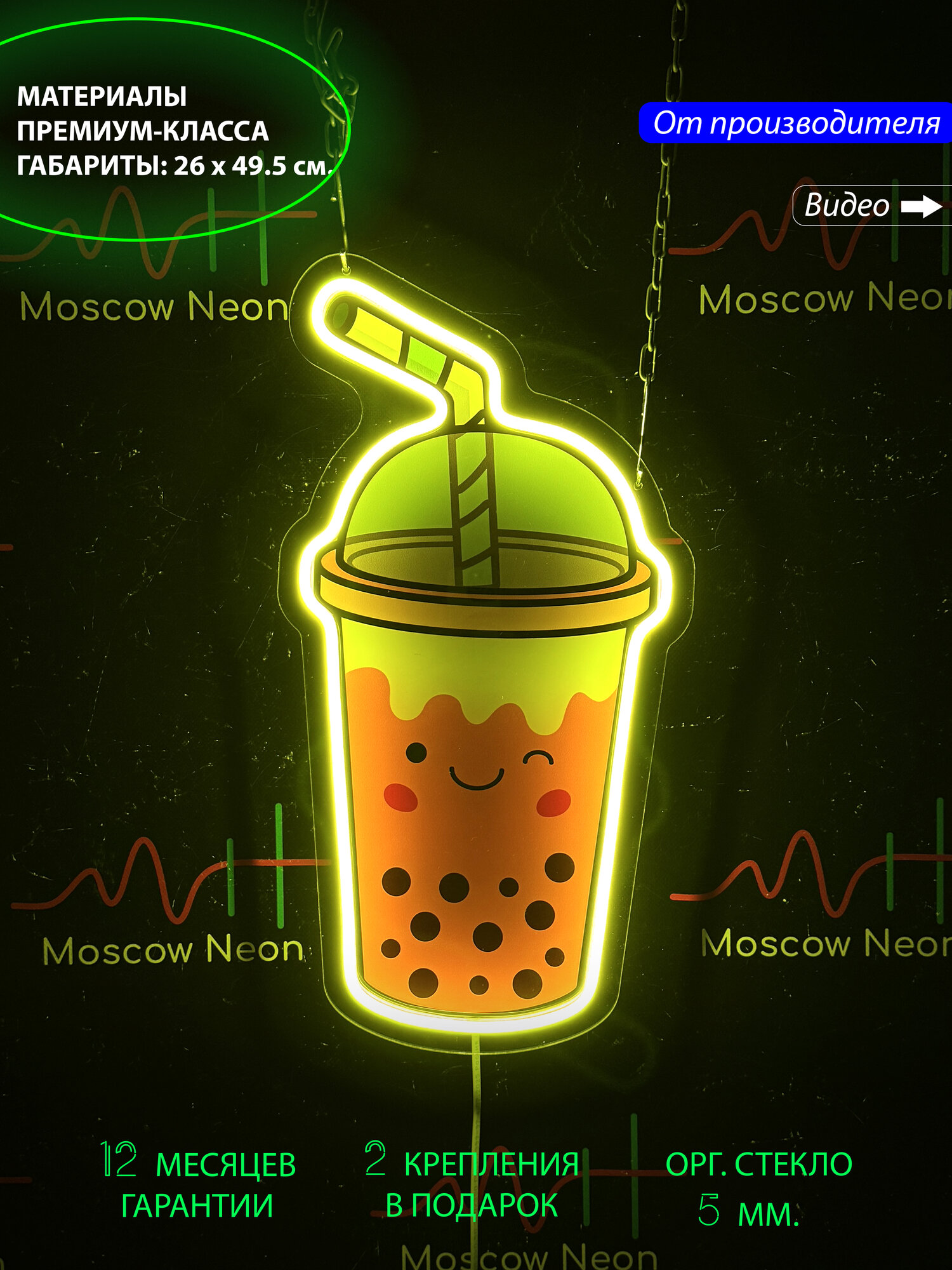Неоновый светильник "Bubble tea" дарит яркий и живой акцент любому помещению, создавая атмосферу радости и непринужденности. Отлично подойдет для креативных пространств, молодежных кафе и стильных уголков для отдыха, придавая интерьеру свежесть и динамику.