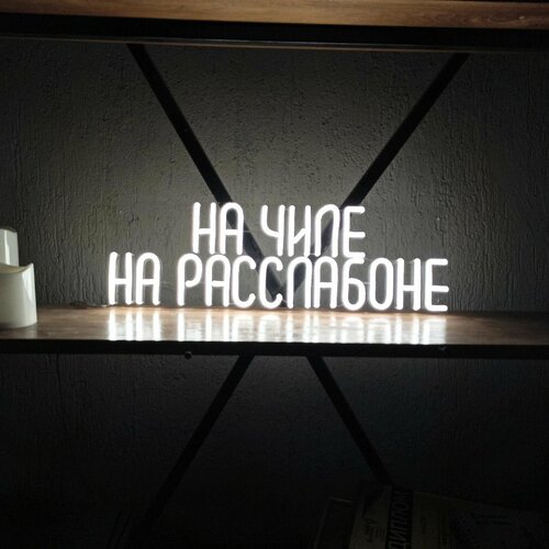 Купить Неоновая табличка На чиле на раслабоне, 50×16 см, белая с доставкой по всей России. Неоновая табличка На чиле на раслабоне, 50×16 см, белая: сравнение цен, характеристики, фото, актуальное наличие и цены.