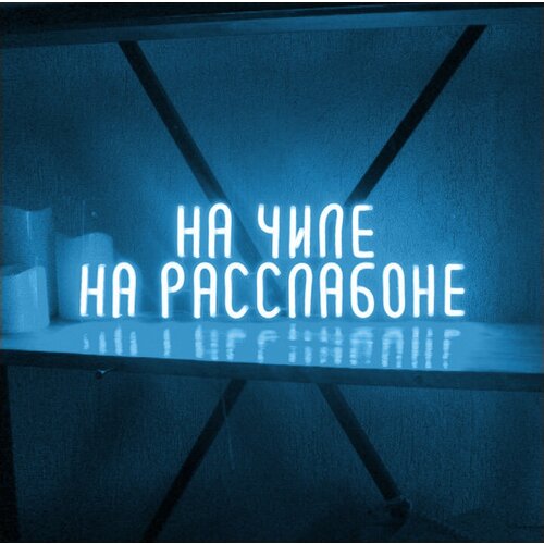 Неоновая табличка ручной работы на прозрачной подложке На чиле на раслабоне, 50x16 см. Изготовлена из гибкого небьющегося светодиодного неона. Силиконовая оболочка неона устойчива к механическим повреждениям. Подложка из прозрачного акрила толщиной 3 мм. Мы используем литой акрил, поэтому наши изделия прочные и их сложнее разбить. На прозрачной подложке предусмотрены отверстия для крепления к стене.