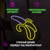 Выбирая неоновую вывеску "Банан" от "Больше Света", вы получаете стильный и оригинальный элемент декора, который добавит яркости и индивидуальности вашему дому или офису.