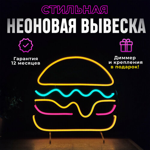 Купить Неоновая вывеска «Бургер», светильник декоративный с доставкой по всей России. Неоновая вывеска «Бургер», светильник декоративный: сравнение цен, характеристики, фото, актуальное наличие и цены.