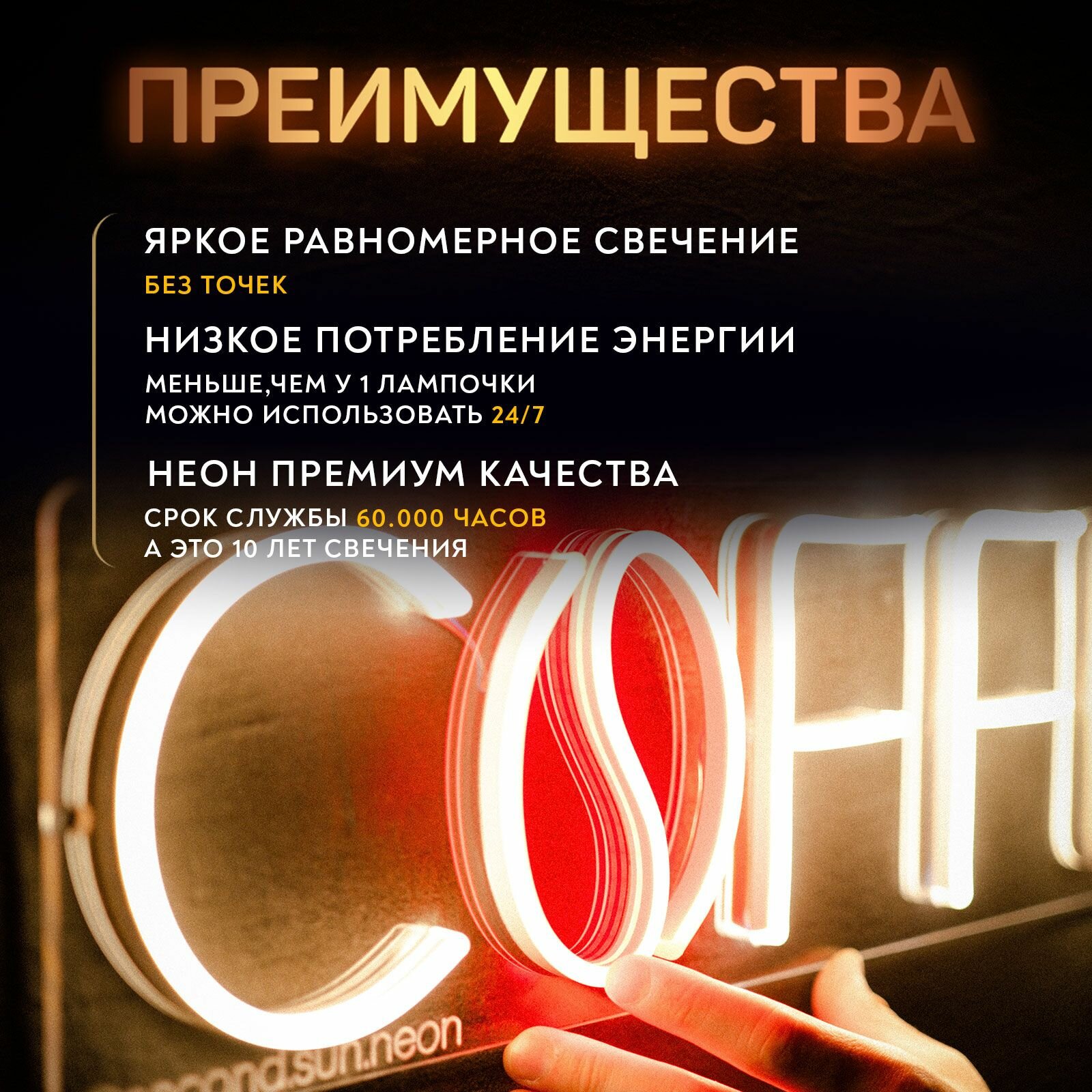 | Комплектация | Неоновая вывеска, блок питания, Крепления, гарантийный талон/руководство пользования |