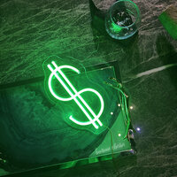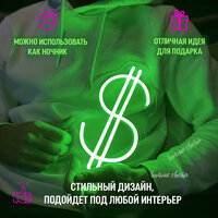 Неоновая вывеска "Доллар" от бренда "Больше света" - это стильный и оригинальный элемент декора, который добавит яркости и индивидуальности вашему дому или офису.