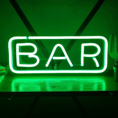 Неоновая вывеска Bar (Бар) ручной работы на прозрачной подложке. Сделана из гибкого небьющегося светодиодного неона толщиной 10 мм. Силиконовая оболочка неона устойчива к механическим повреждениям. Подложка из прозрачного акрила толщиной 3 мм. Мы используем литой акрил, поэтому наши изделия прочные и их сложнее разбить. На прозрачной подложке предусмотрены отверстия для крепления к стене.