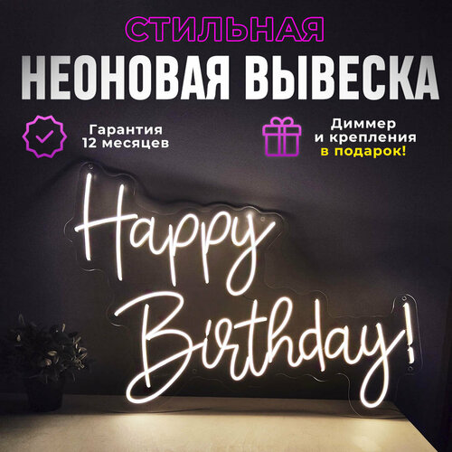 Купить Неоновая вывеска «Happy Birthday», светильник декоративный, 60Вт с доставкой по всей России. Неоновая вывеска «Happy Birthday», светильник декоративный, 60Вт: сравнение цен, характеристики, фото, актуальное наличие и цены.