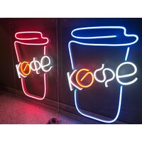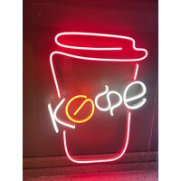 Вывеска "Кофе" (Кофе с собой). Гибкий неон, белого и оранжевого цвета. Основание: оргстекло толщиной 4мм. Размер 40х55см, длина шнура 3м, блок питания, подключение к 220В. Использование только в помещении (интерьере).
