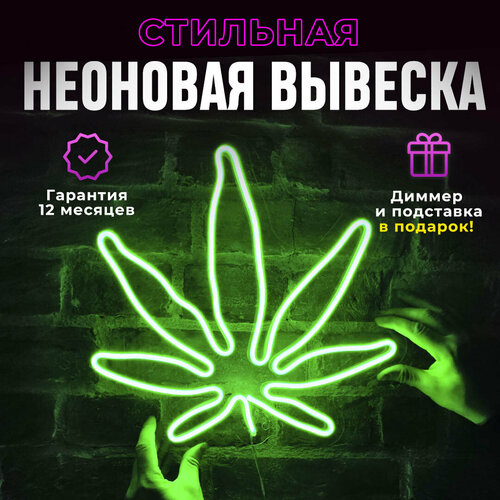 Неоновая вывеска "Лист травы" - это стильный и оригинальный элемент декора, который добавит уюта и тепла в ваш интерьер. Светильник выполнен в форме листика, что делает его ярким акцентом в вашем интерьере или гармонично вписывается в общий стиль помещения.