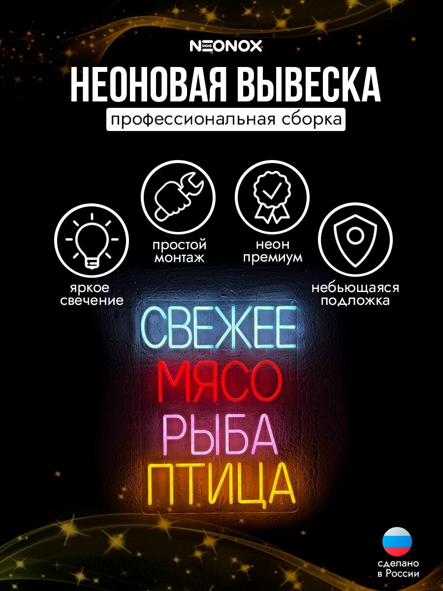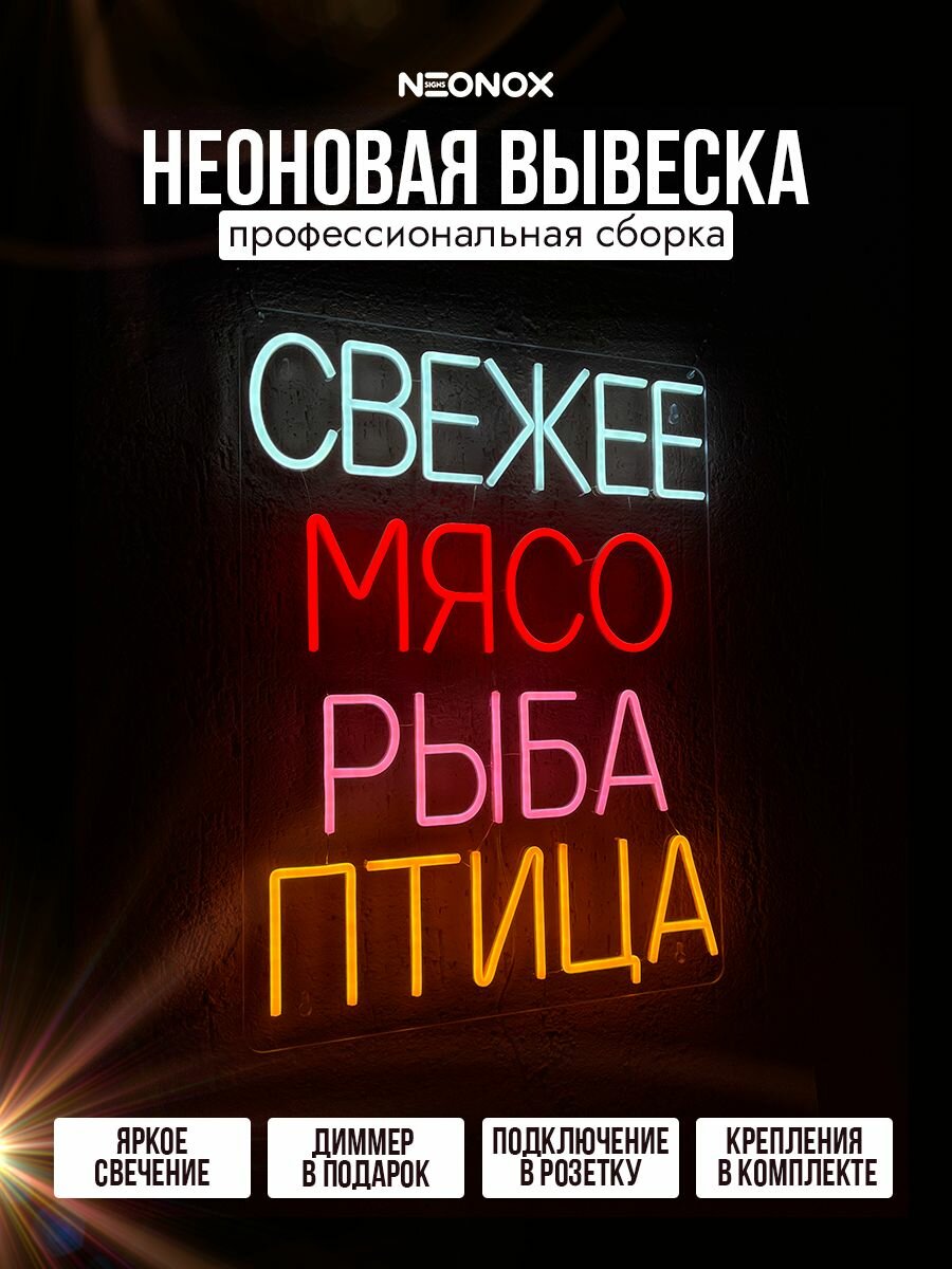 Купить Неоновая вывеска Мясо Рыба Птица с доставкой по всей России. Неоновая вывеска Мясо Рыба Птица: сравнение цен, характеристики, фото, актуальное наличие и цены.