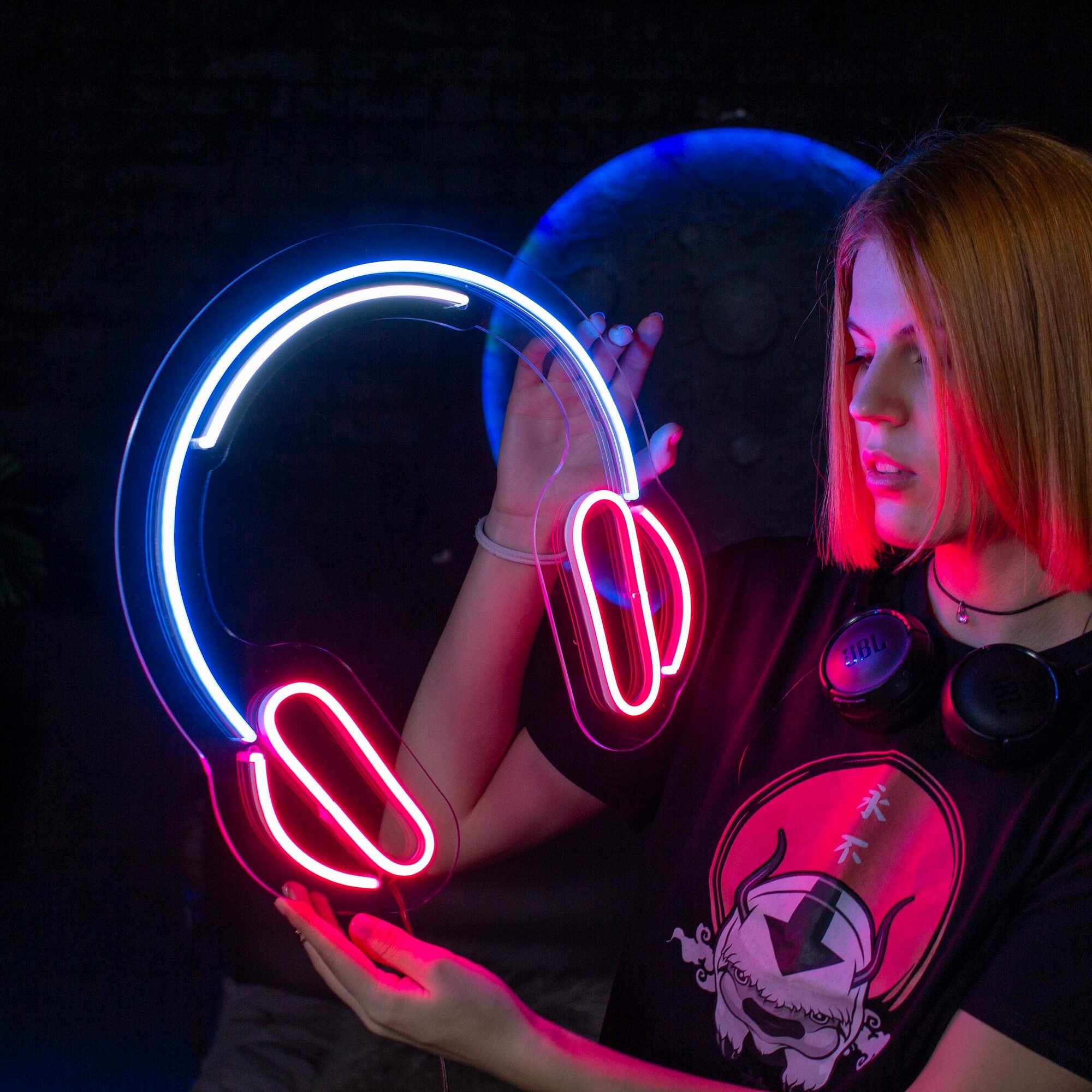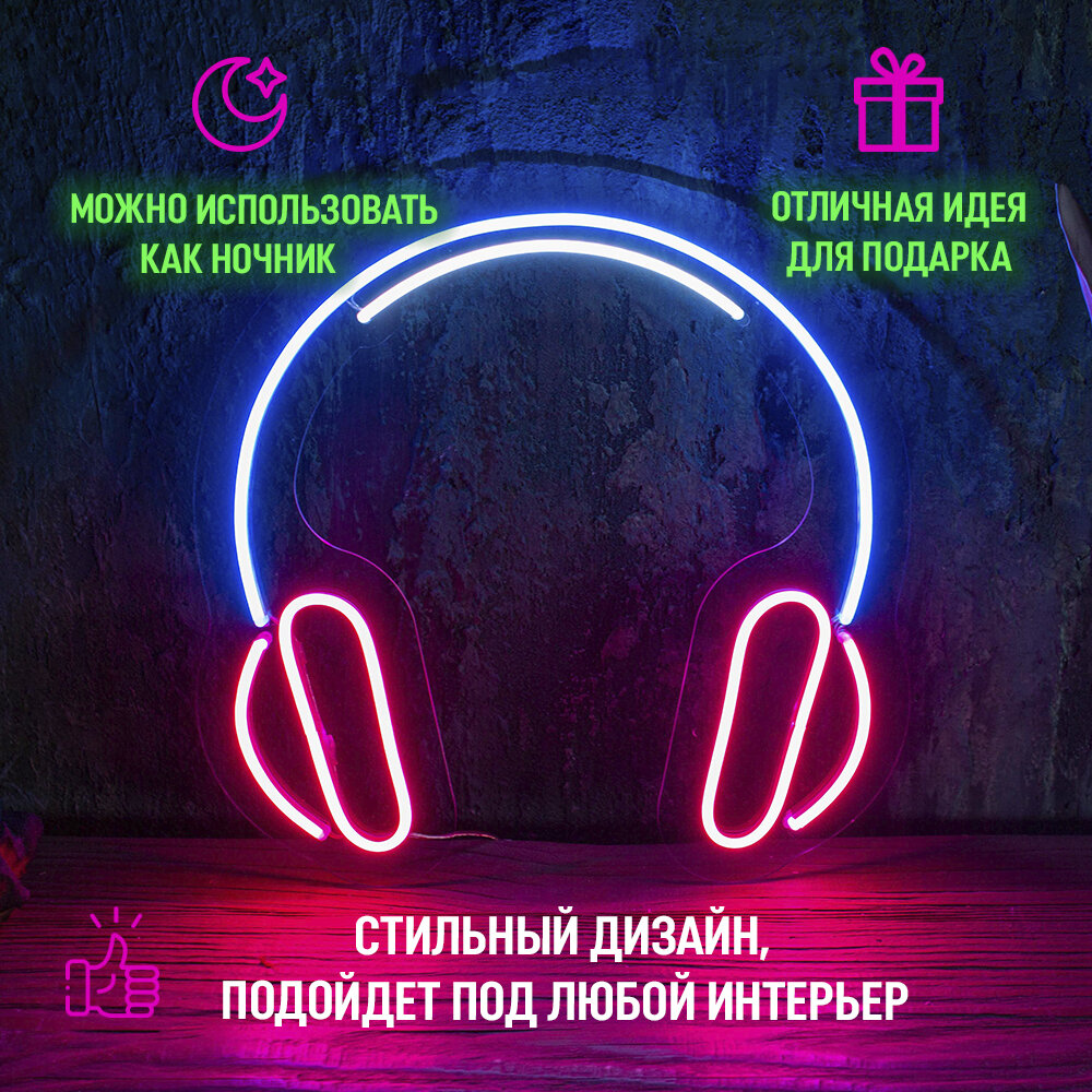 Неоновая вывеска "Наушники" - это стильный и функциональный декоративный светильник, который станет ярким акцентом в любом интерьере.
