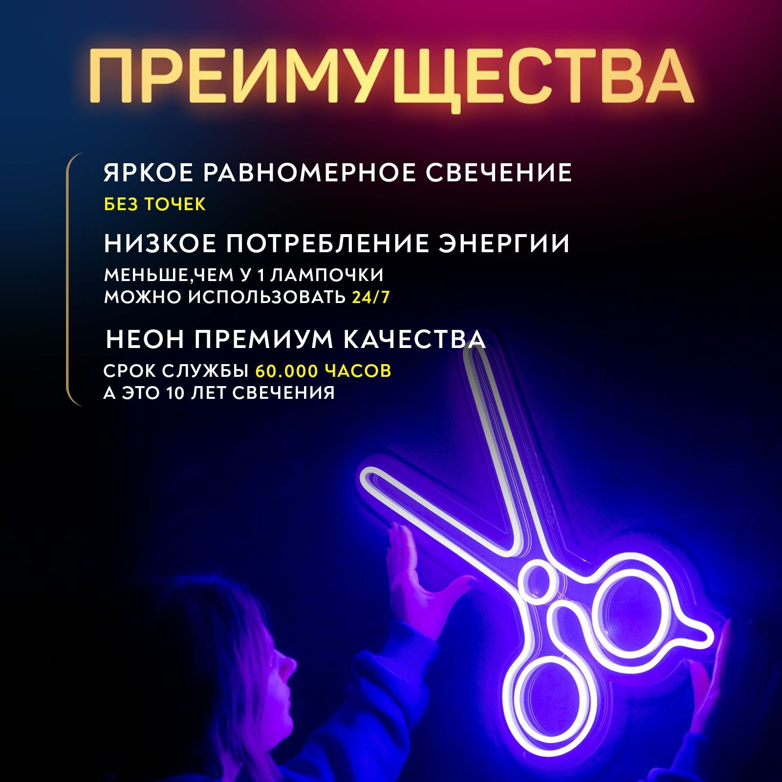 Неоновая вывеска Ножницы для колориста: сравнение цен, характеристики, фото, актуальное наличие и цены.