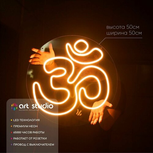 ART Studio Неоновая вывеска Ом 50х50 см для медитативного пространства и лаунж-зоны на подложке из акрила: сравнение цен, характеристики, фото, актуальное наличие и цены.