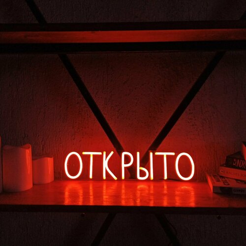 Декоративная неоновая вывеска "Открыто" ручной работы на прозрачной подложке. "Открыто" светится красным цветом. Изготовлена из гибкого небьющегося светодиодного неона толщиной 10 мм. Силиконовая оболочка неона устойчива к механическим повреждениям. Подложка из прозрачного акрила толщиной 3 мм. Мы используем литой акрил, поэтому наши изделия прочные и их сложнее разбить. На прозрачной подложке предусмотрены отверстия для крепления к стене. Размер вывески 40х9 см. Светильник работает от блока питания для подключения в розетку. Свечение регулируется диммером от тусклого до очень яркого. Изделия из гибкого светодиодного неона имитируют газовые неоновые ретро-вывески. При этом экологичны и безопасны. Их можно вешать в спальне, детской или холле. Неоновые вывески сделают любой интерьер ярким и запоминающимся. Светильник ручной работы сделан в русской мастерской Elmarto. В отличии от массового производства мы уделяем большое внимание мелочам. У каждого светильника есть свой автор и мастер, чью бирку вы увидите на изделии. Приятных вам покупок!