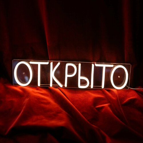 Декоративная неоновая вывеска "Открыто" ручной работы на прозрачной подложке. "Открыто" светится теплым белым цветом. Изготовлена из гибкого небьющегося светодиодного неона толщиной 10 мм. Силиконовая оболочка неона устойчива к механическим повреждениям. Подложка из прозрачного акрила толщиной 3 мм. Мы используем литой акрил, поэтому наши изделия прочные и их сложнее разбить. На прозрачной подложке предусмотрены отверстия для крепления к стене. Размер вывески 40х9 см. Светильник работает от блока питания для подключения в розетку. Свечение регулируется диммером от тусклого до очень яркого. Изделия из гибкого светодиодного неона имитируют газовые неоновые ретро-вывески. При этом экологичны и безопасны. Их можно вешать в спальне, детской или холле. Неоновые вывески сделают любой интерьер ярким и запоминающимся. Светильник ручной работы сделан в русской мастерской Elmarto. В отличии от массового производства мы уделяем большое внимание мелочам. У каждого светильника есть свой автор и мастер, чью бирку вы увидите на изделии. Приятных вам покупок!