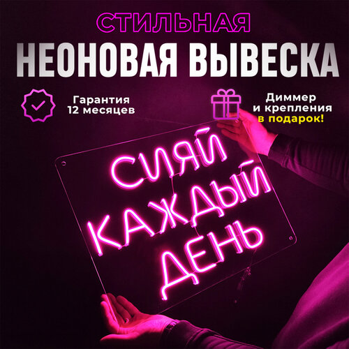 Купить Неоновая вывеска «Сияй каждый день», светильник декоративный с доставкой по всей России. Неоновая вывеска «Сияй каждый день», светильник декоративный: сравнение цен, характеристики, фото, актуальное наличие и цены.