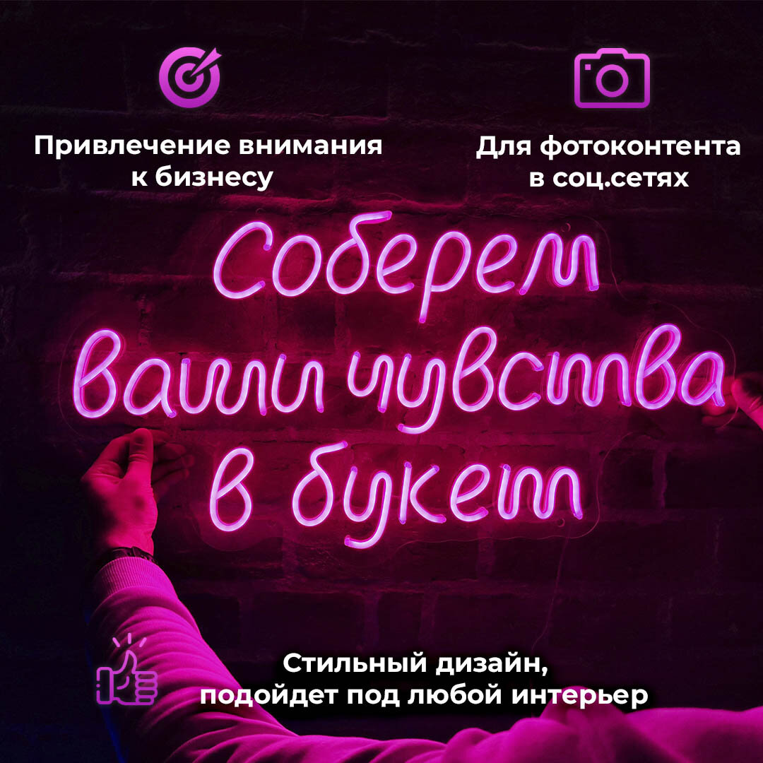 Неоновая вывеска «Соберём ваши чувства в букет» светильник декоративный, розовый: сравнение цен, характеристики, фото, актуальное наличие и цены.