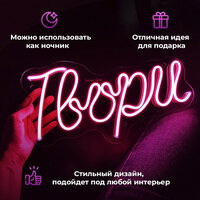 Купить Неоновая вывеска «Твори», светильник декоративный, розовый с доставкой по всей России. Неоновая вывеска «Твори», светильник декоративный, розовый: сравнение цен, характеристики, фото, актуальное наличие и цены.