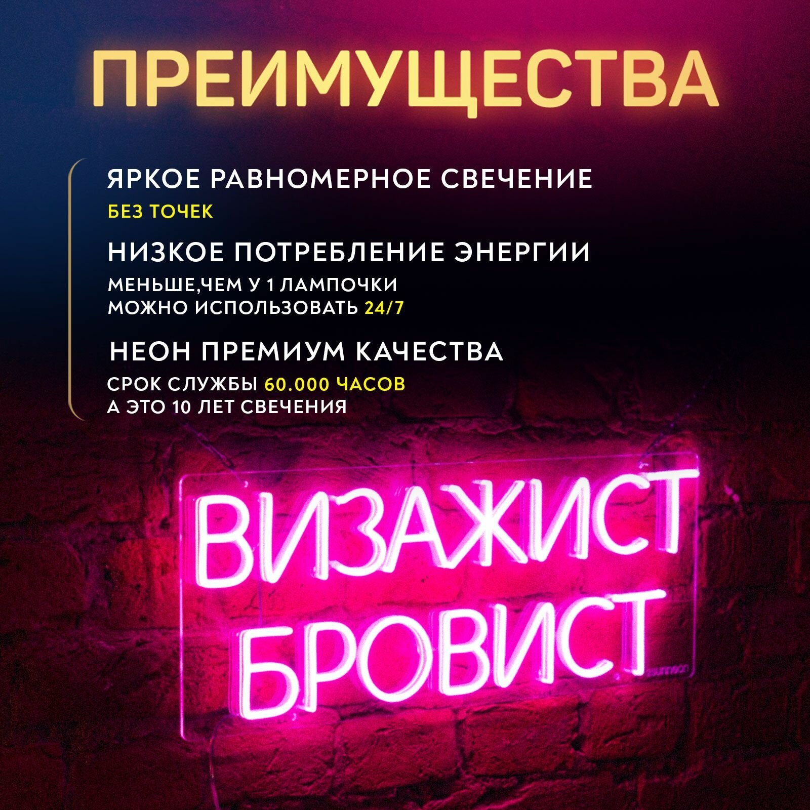 Неоновая вывеска Визажист Бровист: сравнение цен, характеристики, фото, актуальное наличие и цены.