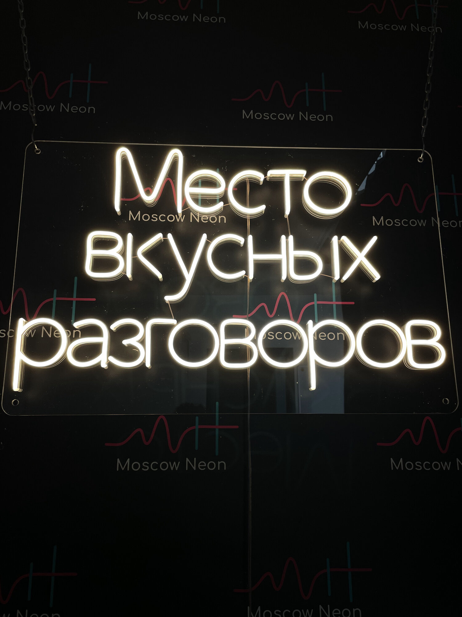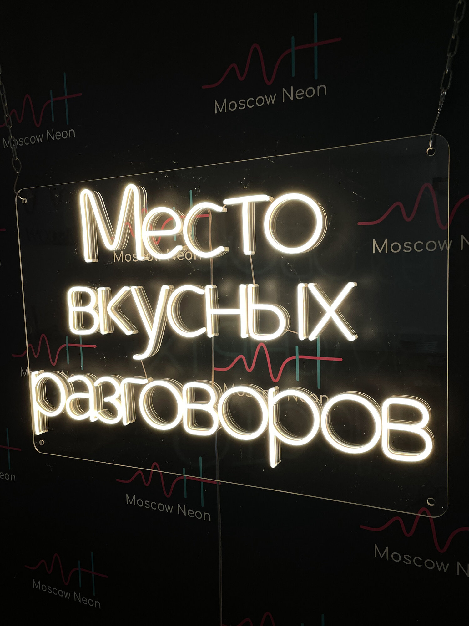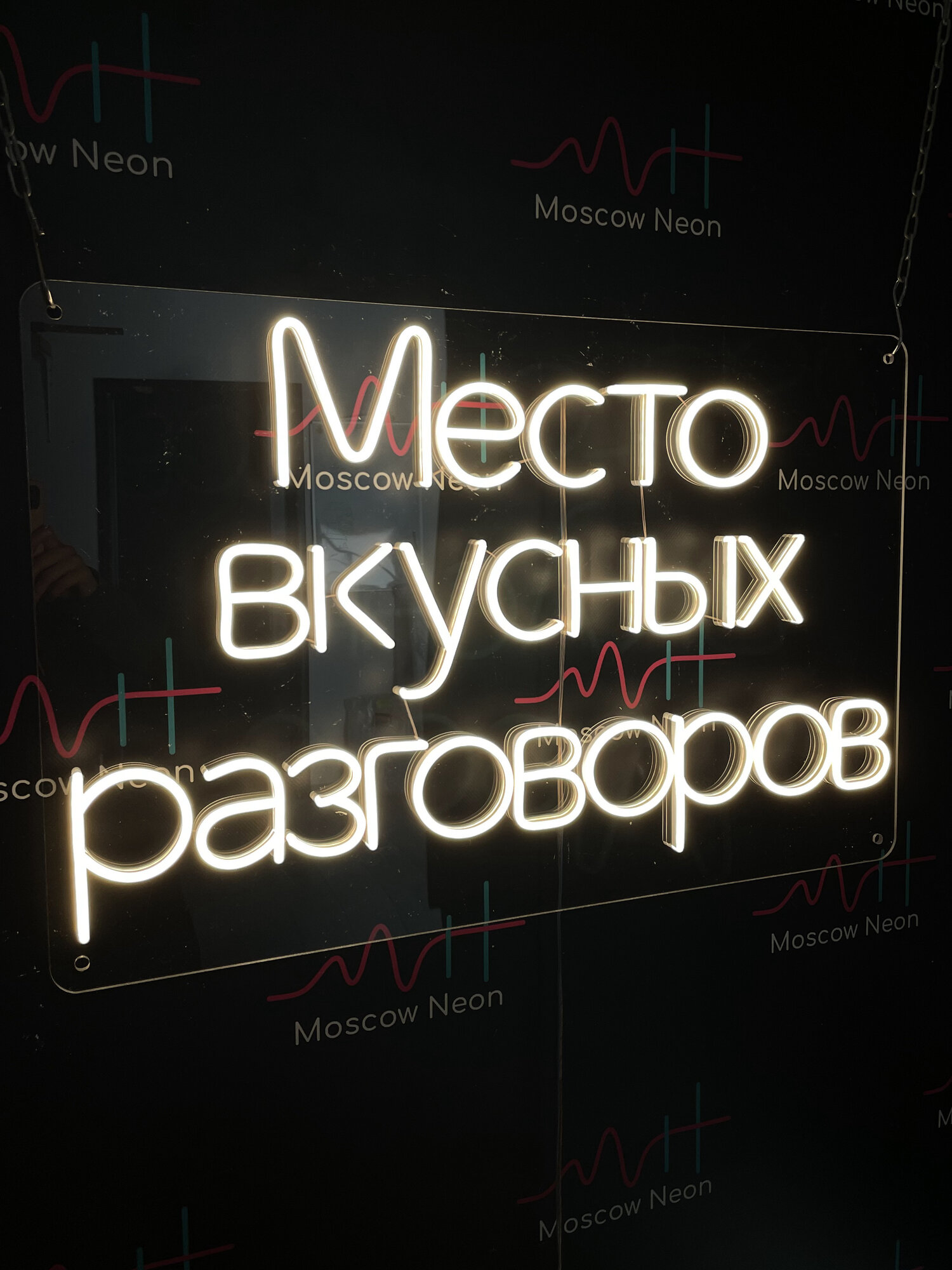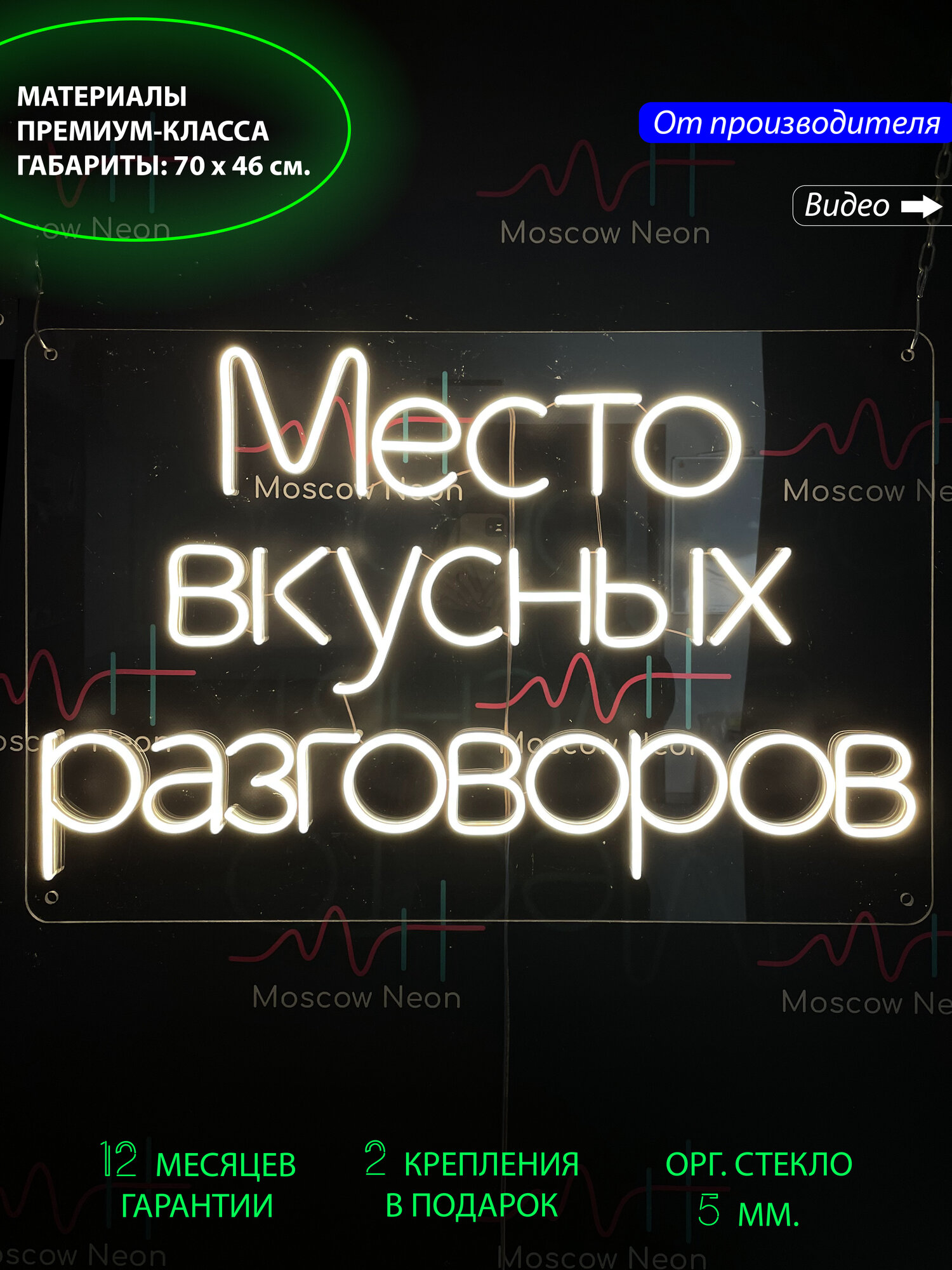 Неоновый светильник, неоновая светодиодная вывеска на стену, надпись для дома «Место вкусных разговоров», 70 х 46 см.: сравнение цен, характеристики, фото, актуальное наличие и цены.