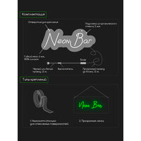 ✦ Материал: гибкий LED. Толщина неона: 6 мм. ✦ Подложка — прозрачный акрил (оргстекло) 5 мм. ✦ Блок питания с «вилкой» ✦ Длина сетевого кабеля — 3 метра ✦ Типы креплений: прозрачная леска и наноскотч ✦ Варианты установки: на стену / на стол ✦ Инструкция по эксплуатации ✦ Гарантийный талон