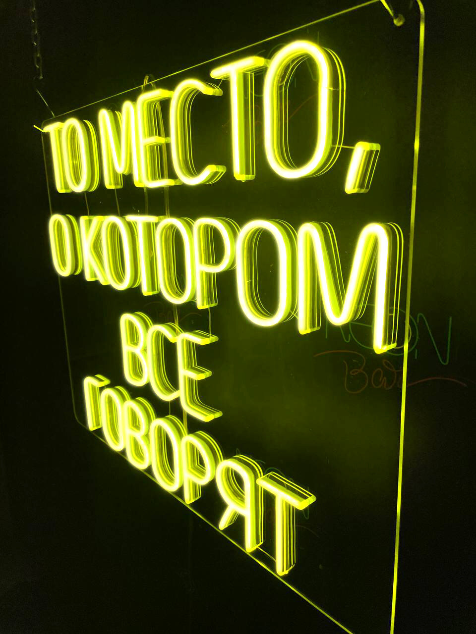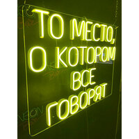 Неоновая вывеска «То место, о котором все говорят» — стильный и запоминающийся акцент для интерьера или фасада. Мягкое свечение создаёт атмосферу уюта. Идеально подойдёт для кафе, бара или бутика, добавляя пространству харизмы и современного шарма.