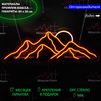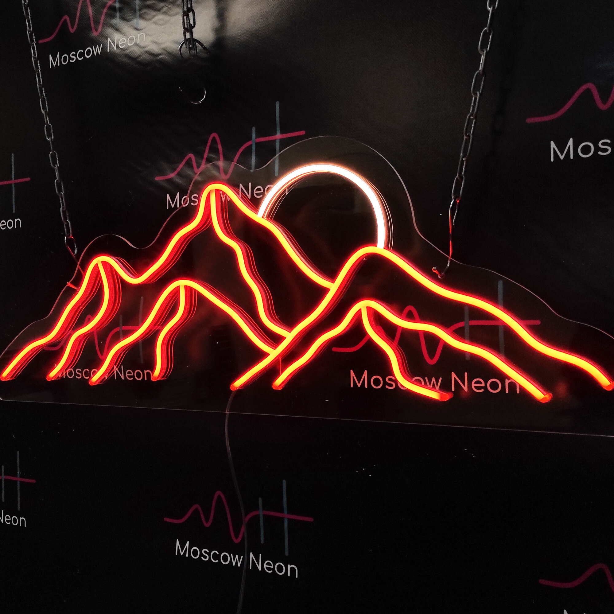 Неоновый светильник, неоновая светодиодная вывеска на стену, настенная неоновая лампа «Горы и солнце», 80 х 28 см.