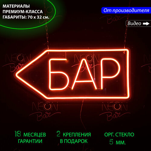 Неоновый светильник, неоновая светодиодная вывеска на стену, настенная неоновая лампа, надпись «Бар» со стрелкой, 70х32 см: сравнение цен, характеристики, фото, актуальное наличие и цены.