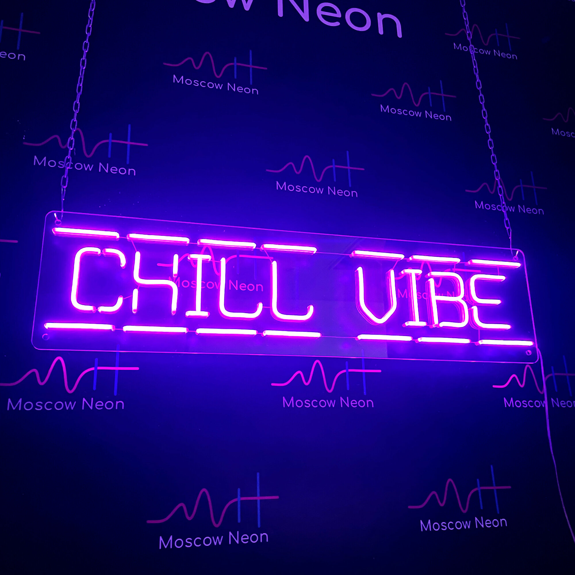 Предлагаем готовые неоновые вывески «Chill Vibe» собственного производства. Вывески отлично подходят для кафе, баров, ночных клубов или проведения вечеринок в других помещениях.