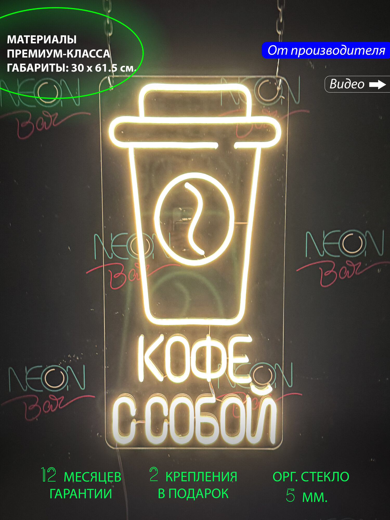 Купить Неоновый светильник, неоновая светодиодная вывеска на стену, надпись «Кофе с собой» для кафе и кофейни, 30 х 61,5 см. с доставкой по всей России. Неоновый светильник, неоновая светодиодная вывеска на стену, надпись «Кофе с собой» для кафе и кофейни, 30 х 61,5 см.: сравнение цен, характеристики, фото, актуальное наличие и цены.