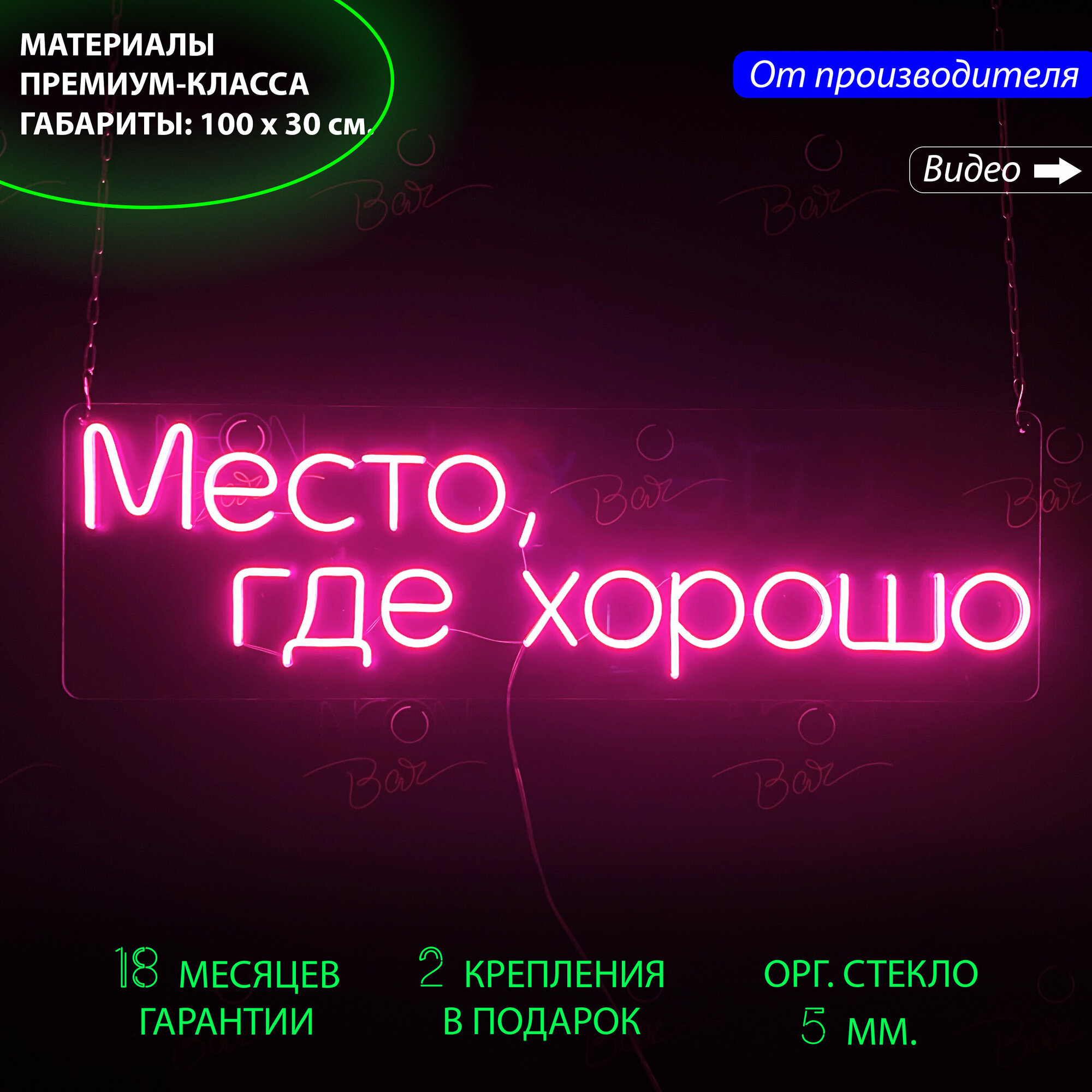 Неоновый светильник, неоновая светодиодная вывеска на стену, настенная неоновая лампа, надпись «Место где хорошо», для дома и бизнеса, 100 х 30 см.: сравнение цен, характеристики, фото, актуальное наличие и цены.