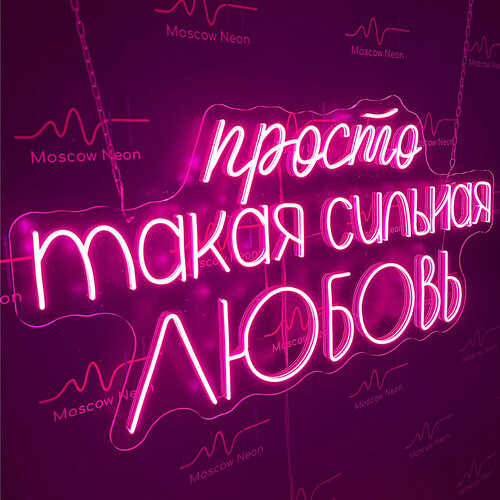 Неоновый светильник / Неоновая светодиодная вывеска на стену / Настенная неоновая лампа, надпись «Просто такая сильная любовь»на свадьбу, розовый, 90 х 46 см.