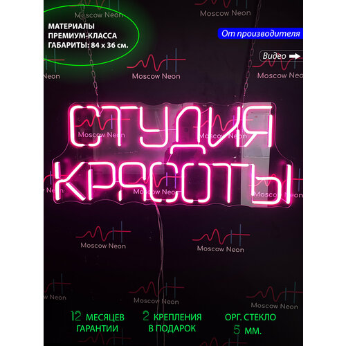 Неоновая вывеска «Студия красоты» — стильное и яркое решение для привлечения внимания к вашему салону или студии. Она создаёт современную и привлекательную атмосферу, подчёркивая профессионализм и индивидуальность заведения. Такая вывеска отлично смотрится как внутри помещения, так и на витрине, делая ваше пространство заметным и запоминающимся. Идеальный акцент для создания уютного и модного интерьера.
