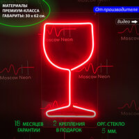Вывеска из гибкого неона в виде красного бокала для кафе и ресторана.