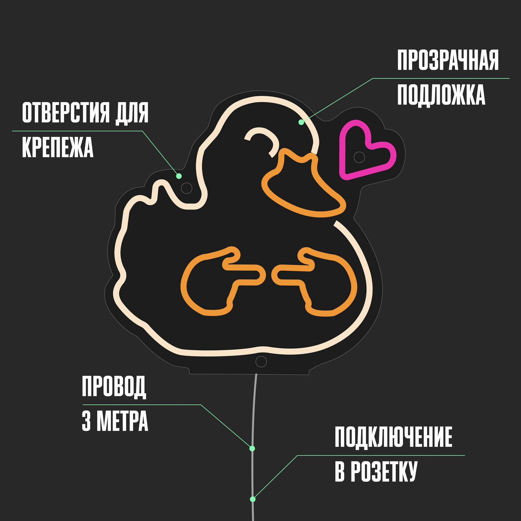 | Цвет свечения | оранжевый, розовый, теплый белый |