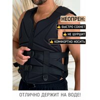 Жилет страховочный чёрный неопрен, жилет для гидроцикла, для гидрика, для водного спорта, водный спорт, спасжилет, неопреновый жилет для водных лыж, для вейка, для вейкборда, для плавания, для купания, спасжилет для рыбалки.