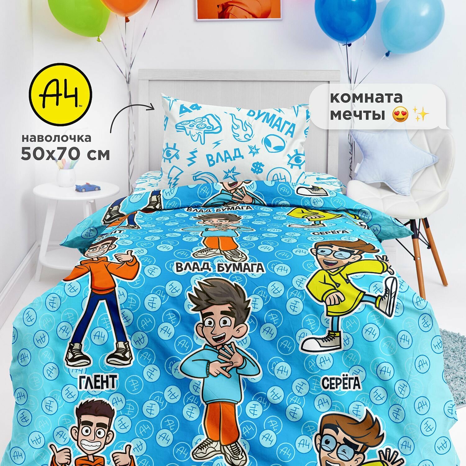 Непоседа, Комплект детского постельного белья 1 5 спальный, Поплин, 1 нав. 50х70, Влад А4 бумага блогер