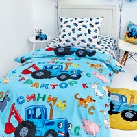 Купить Непоседа, Комплект детского постельного белья 1 5 спальный, Поплин, 1 нав. 70х70, Синий трактор с доставкой по всей России.