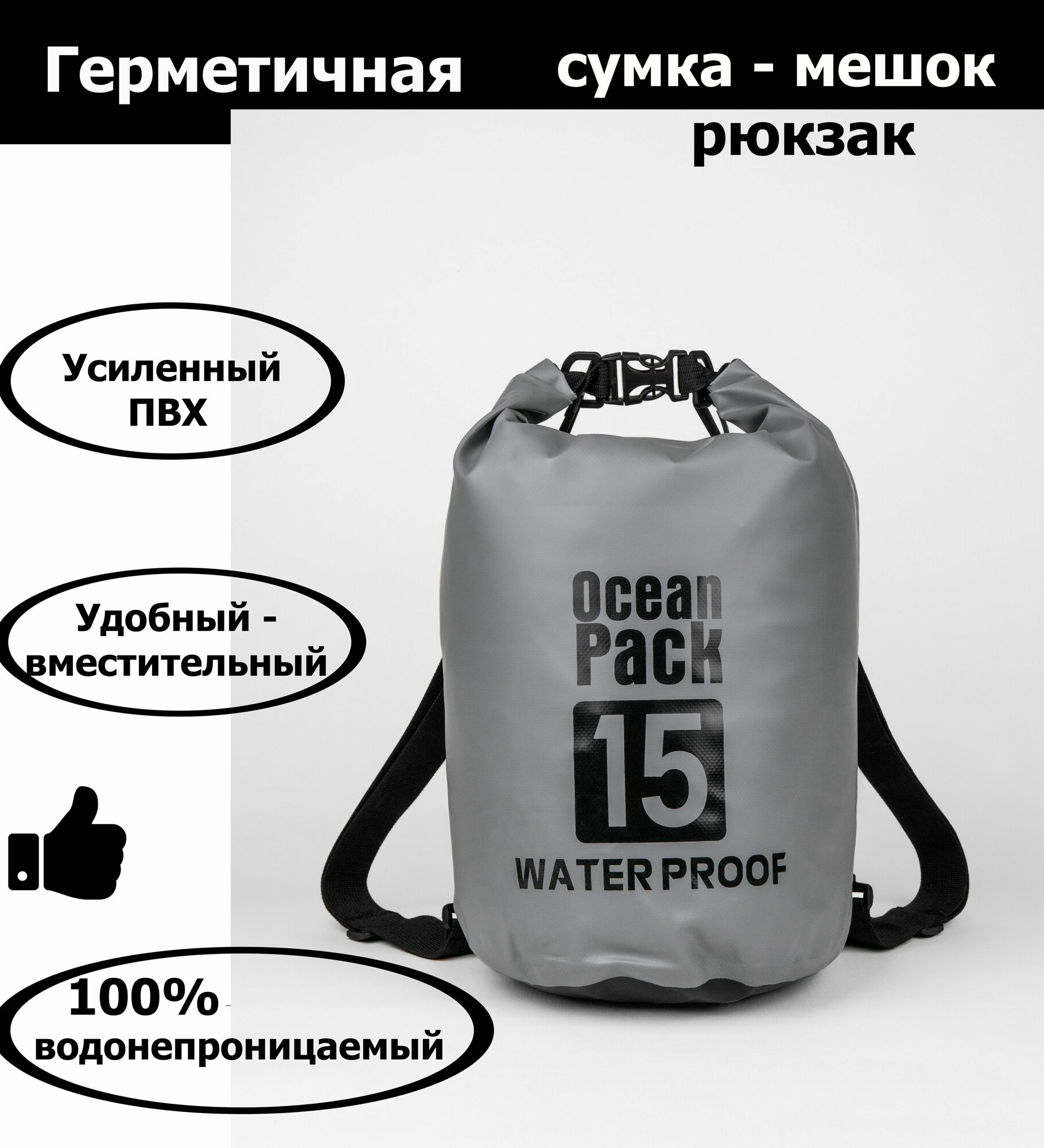 Непромокаемая водонепроницаемая герметичная сумка мешок Ocean Pack 15 литров (15 л) с клапаном и лямками: сравнение цен, характеристики, фото, актуальное наличие и цены.