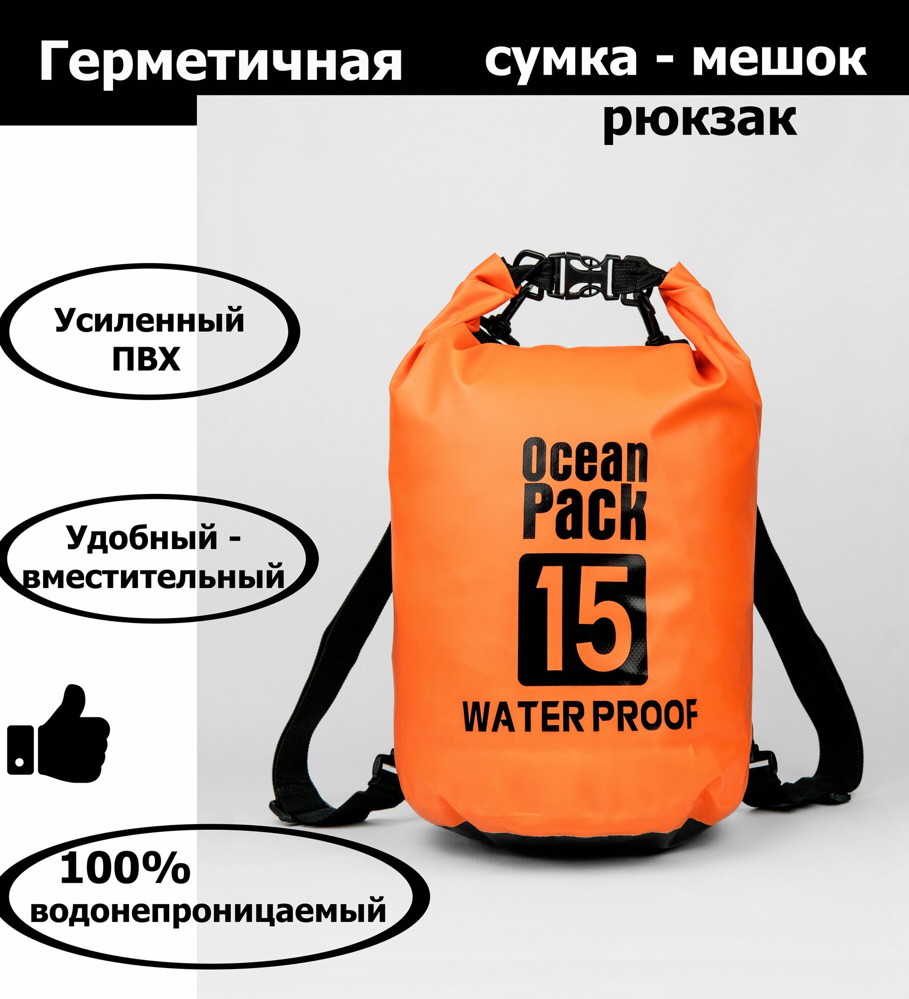 Непромокаемая водонепроницаемая герметичная сумка мешок Ocean Pack 15 литров (15 л) с клапаном и лямками: сравнение цен, характеристики, фото, актуальное наличие и цены.