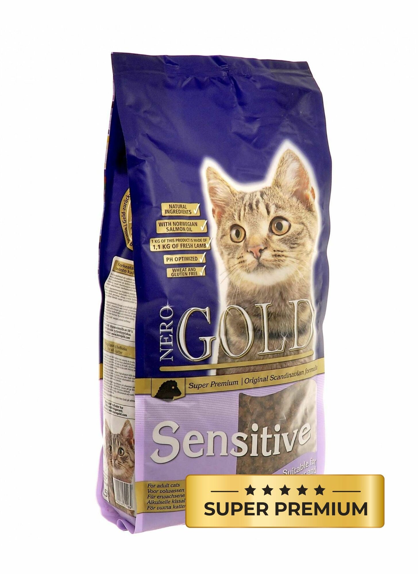 Сухой корм Nero Gold Cat Adult Sensitive для взрослых кошек и котов с чувствительной кожей, шерстью или пищеварением - это питание супер-премиум класса из Голландии, производимое на основе мяса ягненка. Корм подходит также для кошек, имеющих аллергическую предрасположенность на другие виды белка. Состав корма богат полезными питательными веществами, витаминами и минералами.