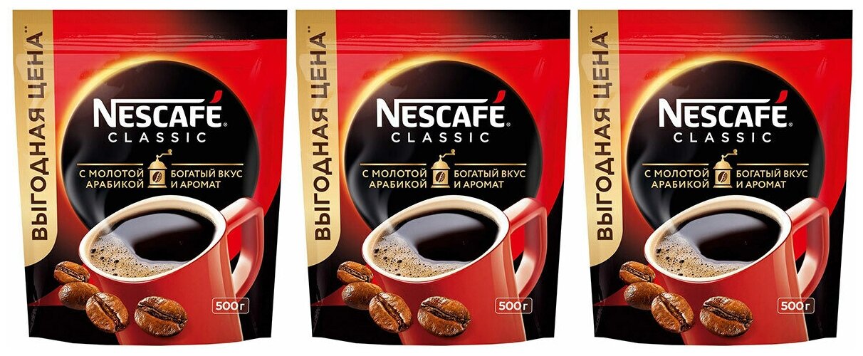Купить Nescafe Nescafe Classic с молотой арабикой (500 г) м/у 3 штуки с доставкой по всей России.