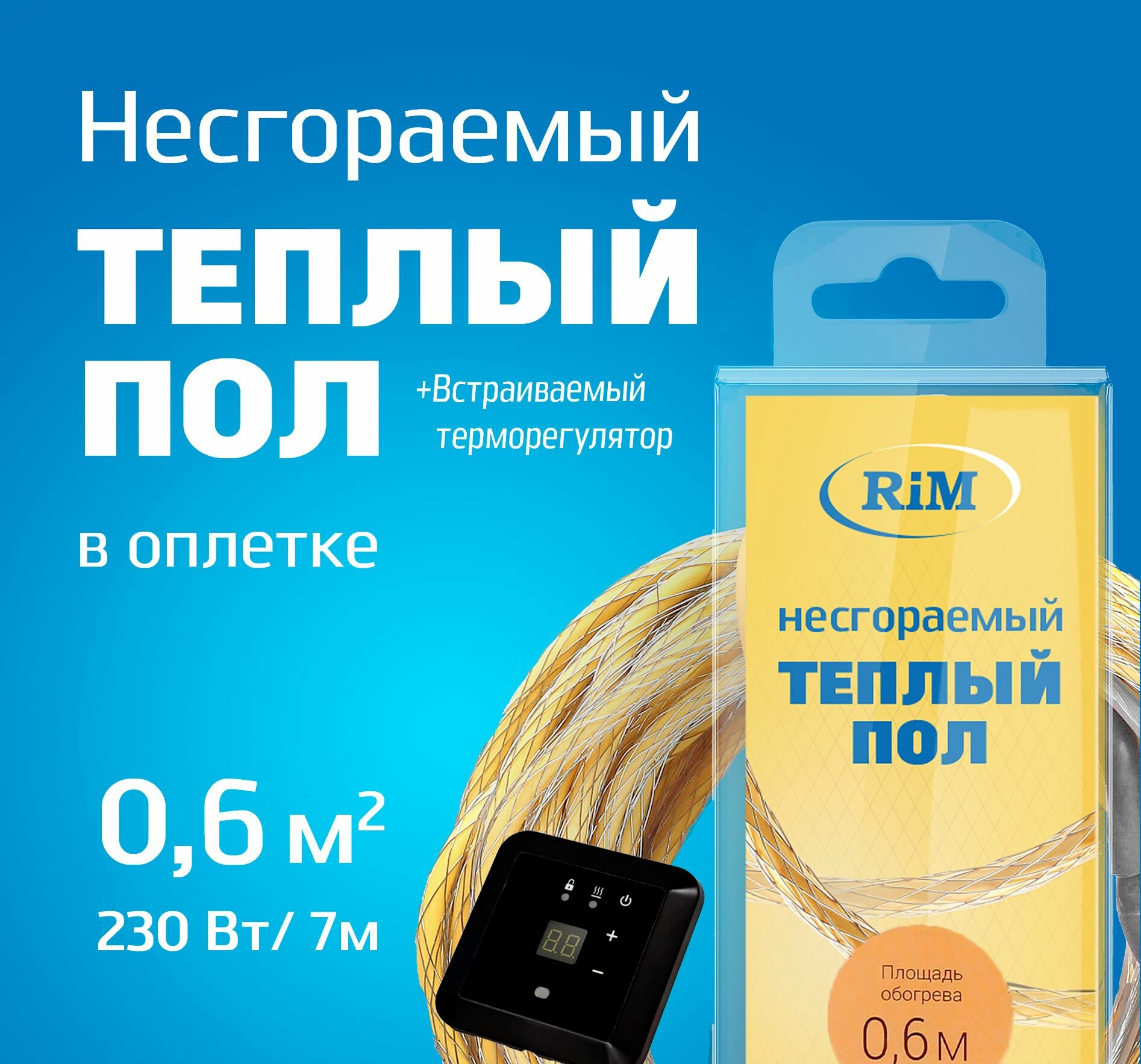 Несгораемый теплый пол с черным встраиваемым терморегулятором 230Вт (Экранированный), Греющая секция «RiM» Hot 7 м в оплетке 0,6м2 под плитку, под ламинат, электрический, инфракрасный: сравнение цен, характеристики, фото, актуальное наличие и цены.