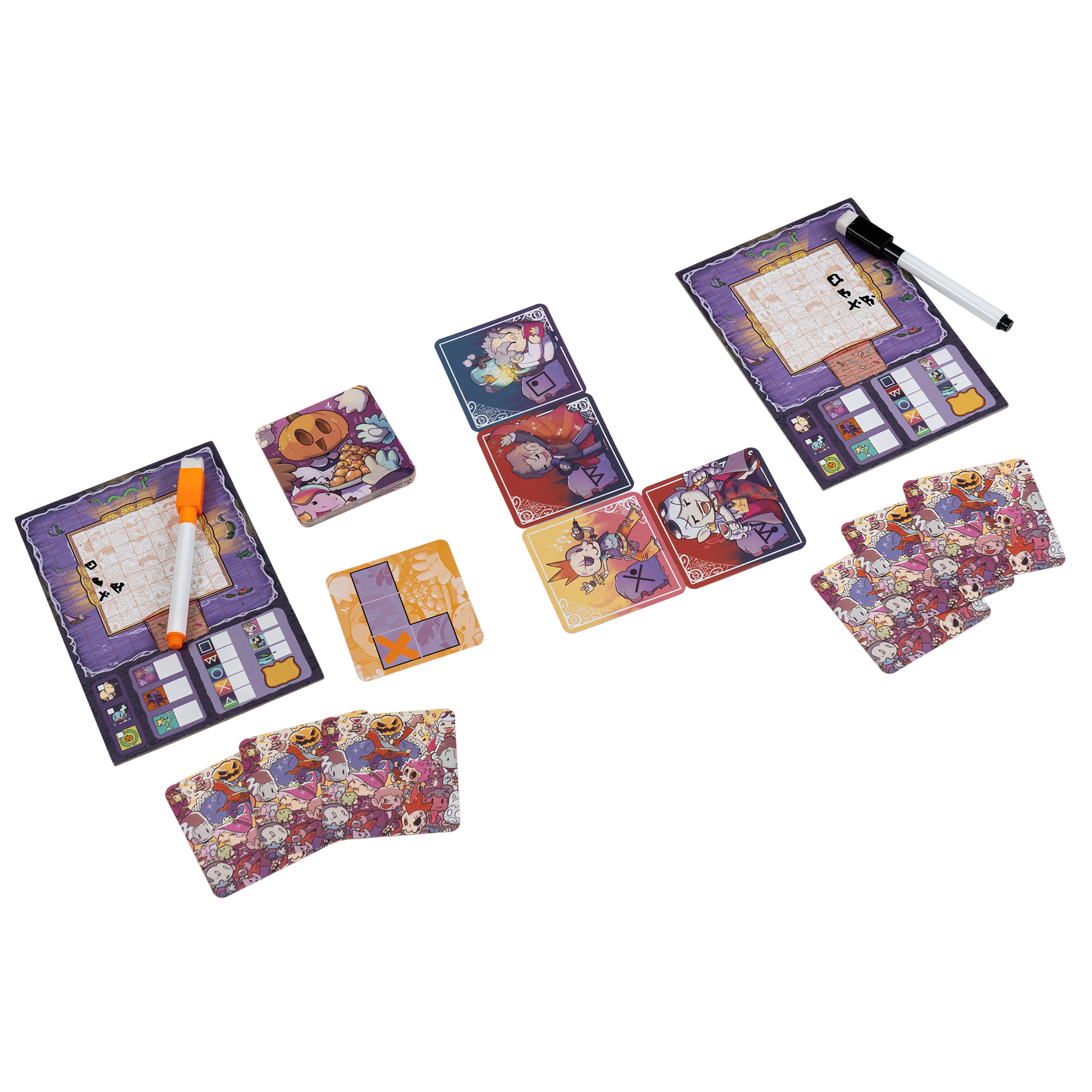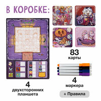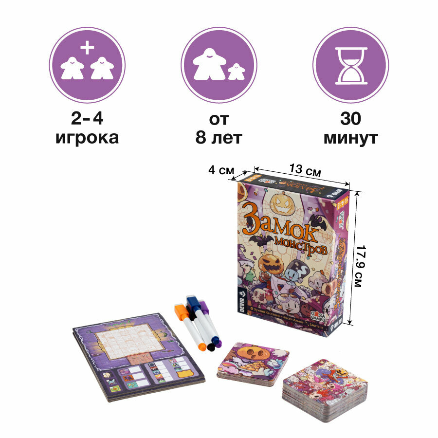 Замок Монстров – это ужасно очаровательная и страш-ш-шно конфликтная настольная игра в жанре "переверни и запиши", которая порадует игроков красочными хэллоуинскими иллюстрациями и мозголомными партиями. Вы устроите жуткую вечеринку и попытаетесь разместить целый набор гостей всех мастей, которые желают её посетить. Каждый ход вы будете переворачивать карточку с определённой фигурой, согласно которой вам нужно будет расположить всевозможных хэллоуинских существ, зарисовывая их на своем планшете. Но гости капризны и хотят располагаться по своим особым правилам, так что вам предстоит хорошенько подумать над тем, как их уместить в замке, чтобы получить максимум очков. Ну и какая вечеринка без фейерверков, тостов за короля, танцпола, ламбады и иных развлечений, который принесут вам дополнительные очки? Но если вы не сможете разместить гостей, то придётся оставить их на мосту у замка или даже безжалостно скинуть в ров – а они, уж поверьте, этому будут совершенно не рады! Сумеете ли вы устроить самый запоминающийся приём?