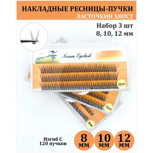 Купить NESURA / Накладные ресницы пучки / Набор MIX 3шт / Ресницы Ласточкин хвост / Длина: 8,10,12мм / Рыбий хвост / для макияжа и визажиста с доставкой по всей России.