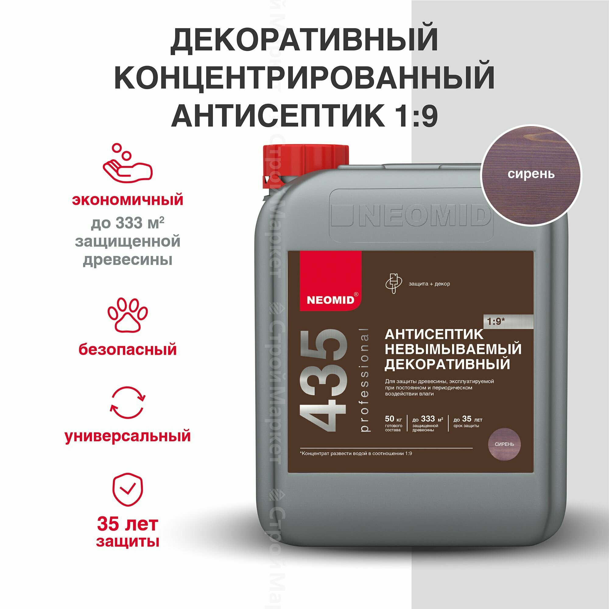 Невымываемый антисептик для дерева NEOMID 435 ECO , финишная пропитка неомид для тяжелых условий, концентрат 1:9, сирень 5 кг: сравнение цен, характеристики, фото, актуальное наличие и цены.