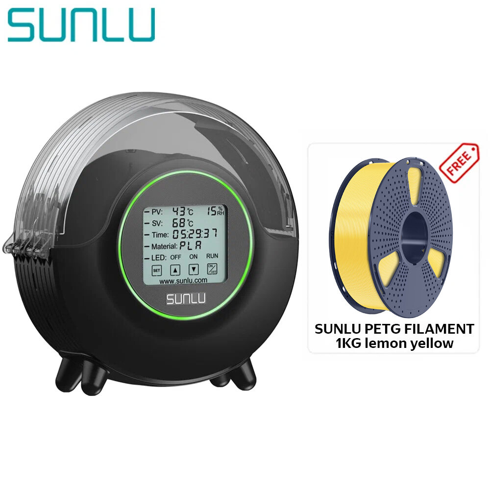 New 2024 SUNLU S2 Black Coil Drying Oven with PETG Filament, lemon yellow, 1.75mm, 1KG, 3D Printer: сравнение цен, характеристики, фото, актуальное наличие и цены.